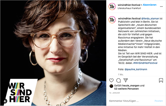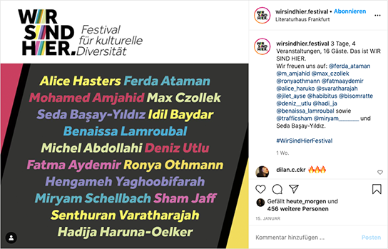 Ein Jahr nach den rassistischen Anschlägen von Hanau hat das Literaturhaus Frankfurt vom 18. – 20.02.2020 zu einer neuen Veranstaltung eingeladen: WIR SIND HIER. Das Festival für kulturelle Diversität.
